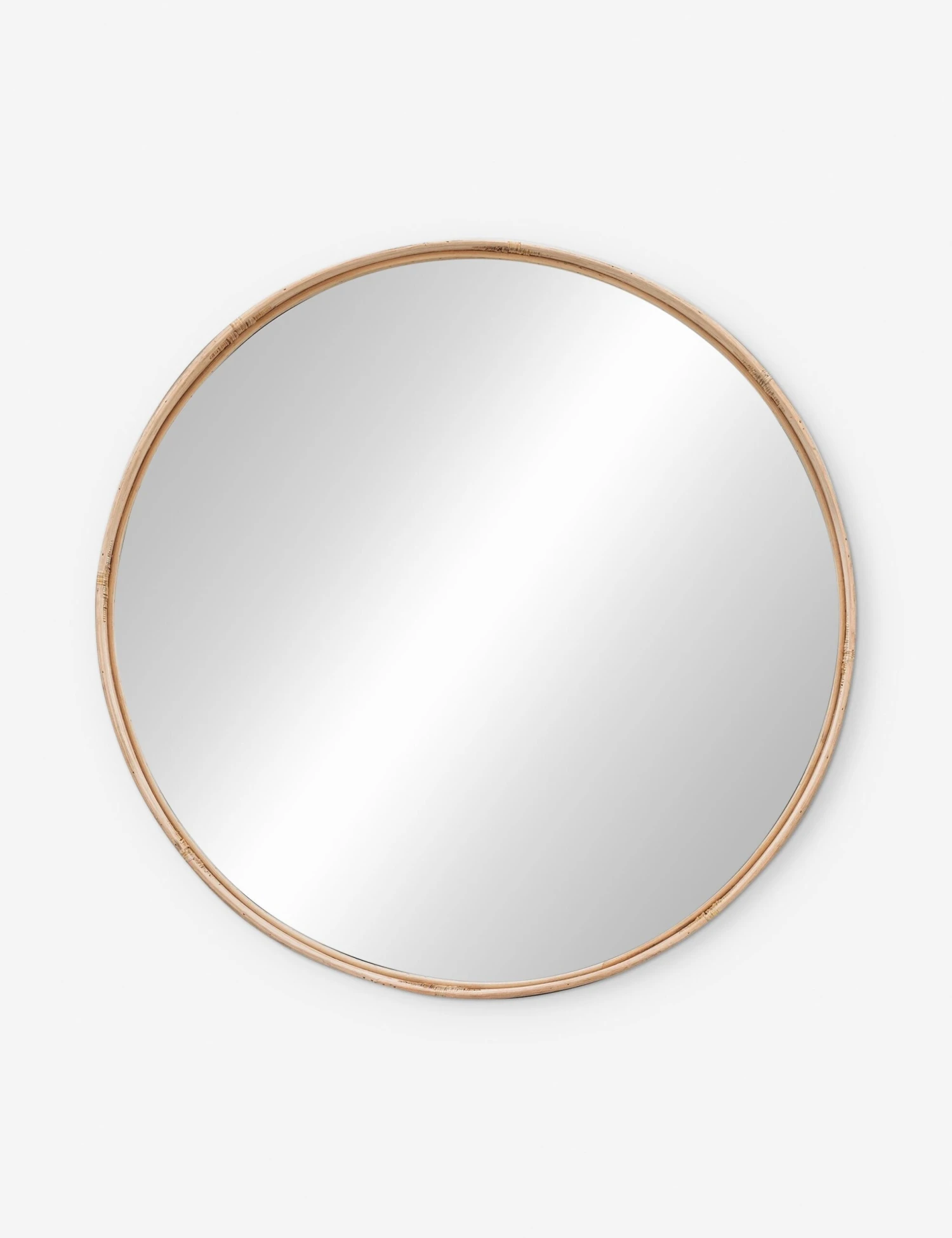 This round mirror may appear simple from a distance, but get closer and you’ll see the small geometric details woven into the rattan frame. We love the subtle Southwestern influence of this wall-mounted mirror!