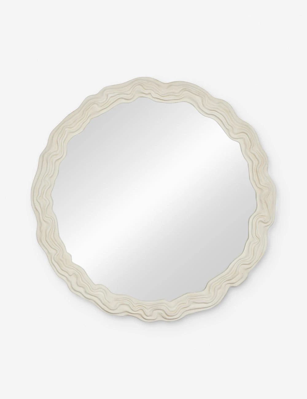 A free-flowing ridged design creates an almost topographic feel in this unique mirror frame. The on-trend round design is perfect for offering a fresh dimension above an entryway or console table. This piece is from our exclusive Sarah Sherman Samuel collaboration and features all the trademarks of her warm, edited style.