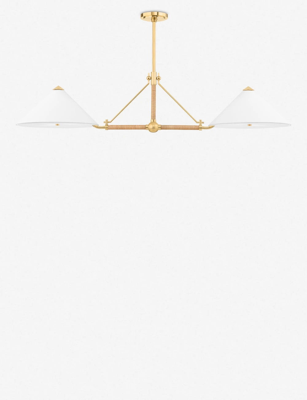 A sleek shade offers a geometric edge to this modern pendant light design. We love the pairing of the antique brass finish with rattan for a fresh touch with versatile styling potential. Hang this pendant over your kitchen counter or coffee table for polished appeal.