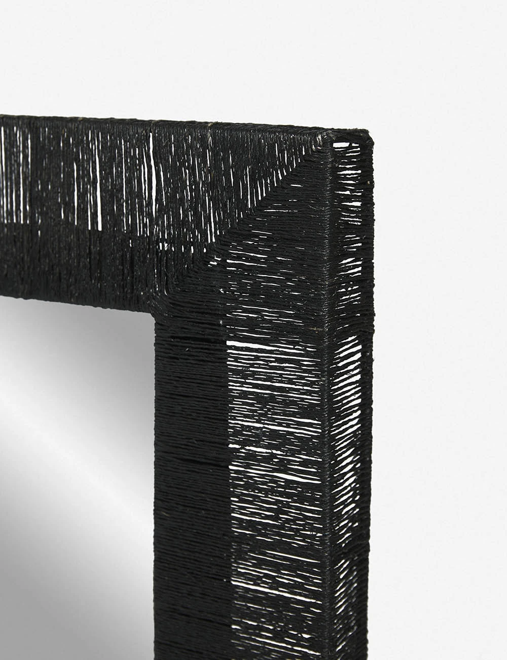 This framed mirror is a statement-making accent, combining organic appeal with a sleek black color. Twisted jute fibers are tightly woven around a light steel frame to create a textural finish. Hang this wall mirror above a sideboard, console table, or dresser in a dark finish for a monochromatic look.