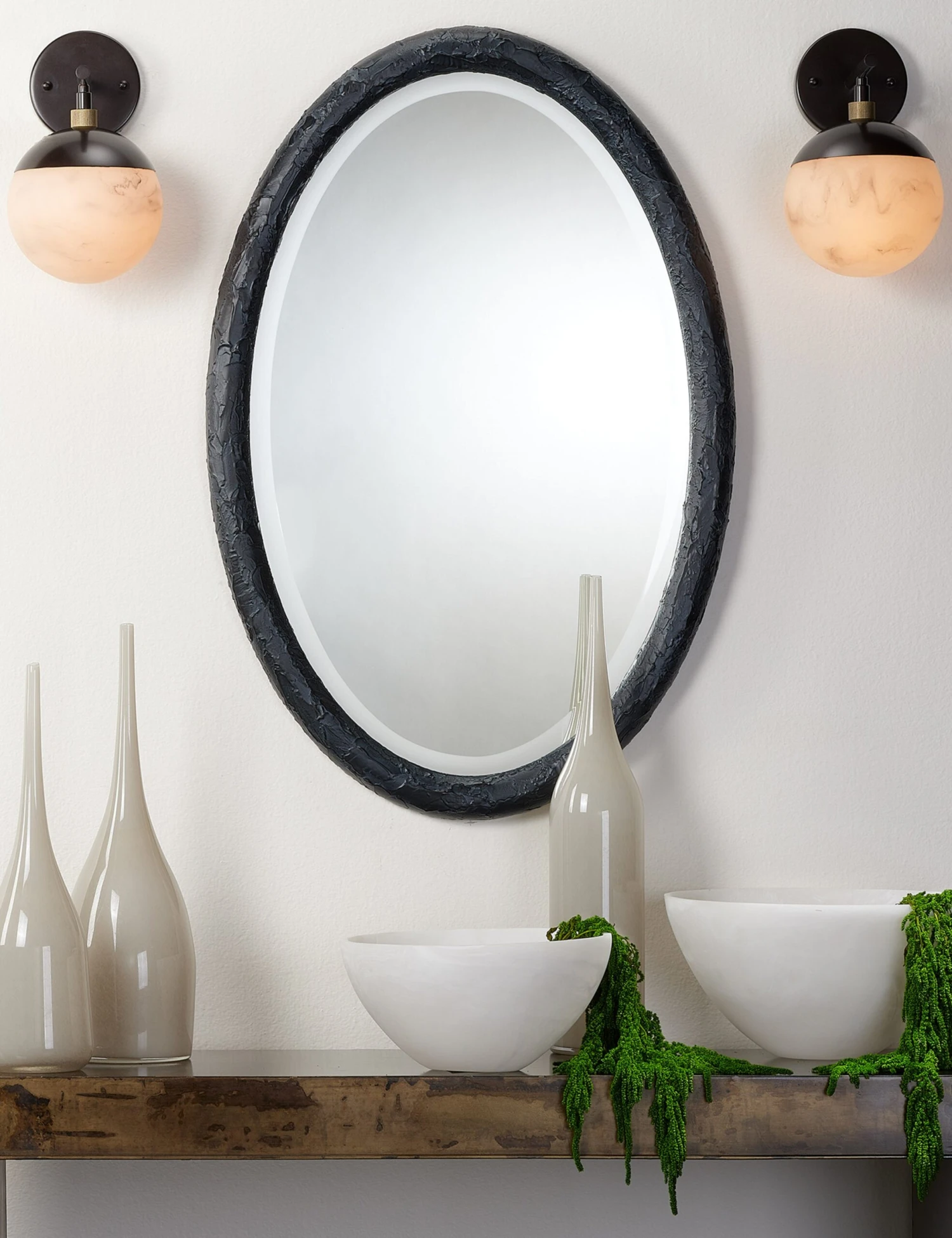Denma offers a fresh update on oval mirror designs with a rounded frame and contrast finish that pops in the room. We love this versatile mirror for adding light and depth to an entryway or small-space design with a chic touch set for modern appeal.