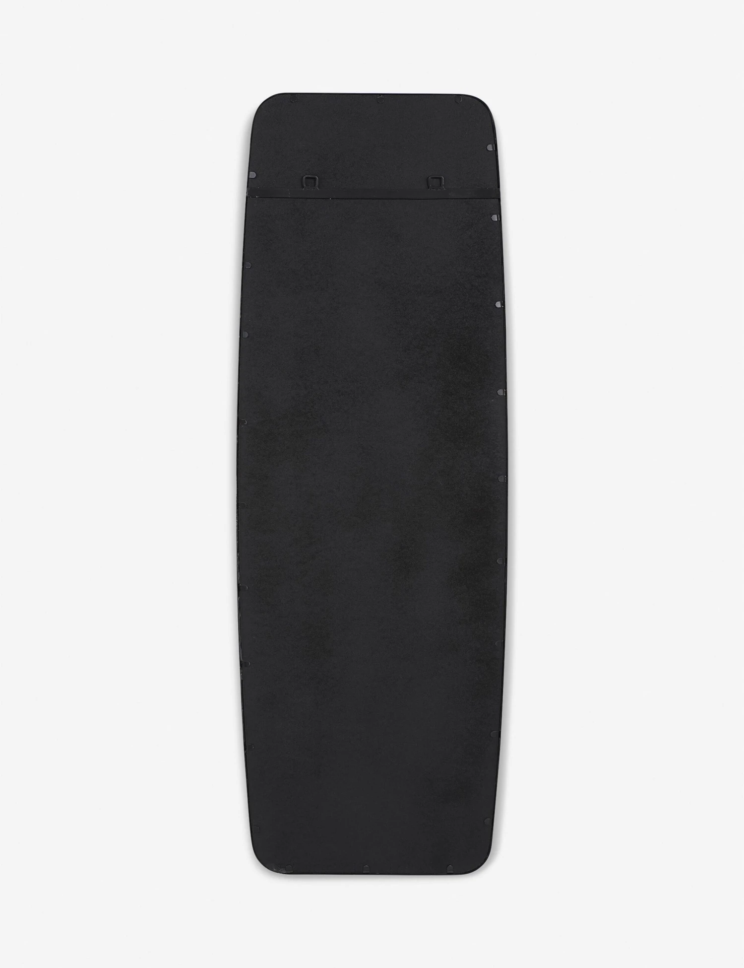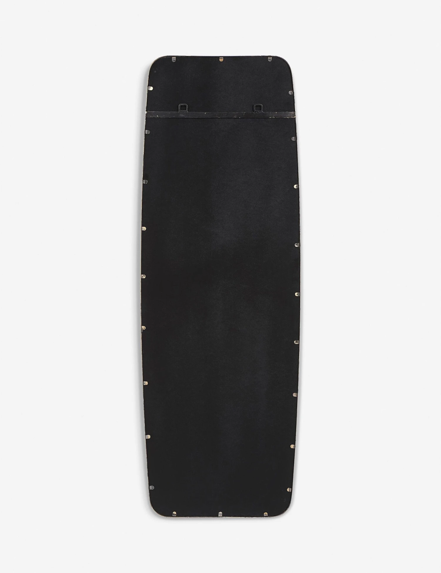 With a matte black or antiqued gold finish and subtly curved design, this full length wall mirror expertly combines a sleek, modern look with everyday functionality. This framed full body mirror is an ideal fit for your bedroom, walk-in closet, or your entryway.