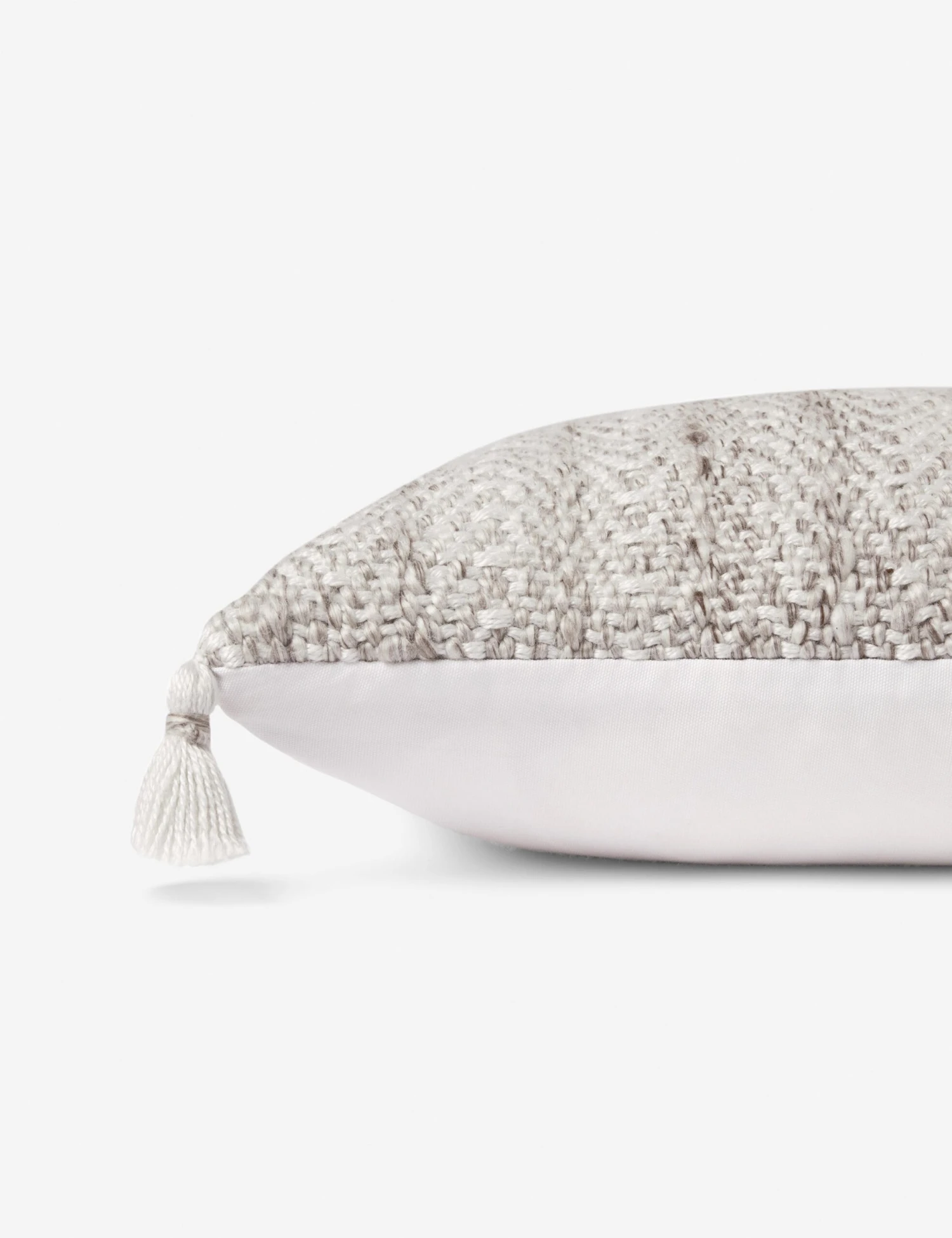A dynamic mix of striped and chevron patterns is complemented by a tonal palette and corner tassels to lend this lumbar throw pillow luxe, laid-back appeal. Woven entirely from synthetic fibers, this accent pillow also stands up to any high-traffic setting.