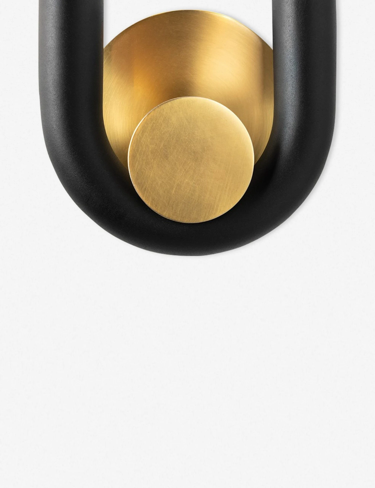 A whimsical take on modern style, this chic wall sconce features a sleek black pipe draped over brass hardware. Playing with shapes and textures, it’s finished with two spherical bulbs.