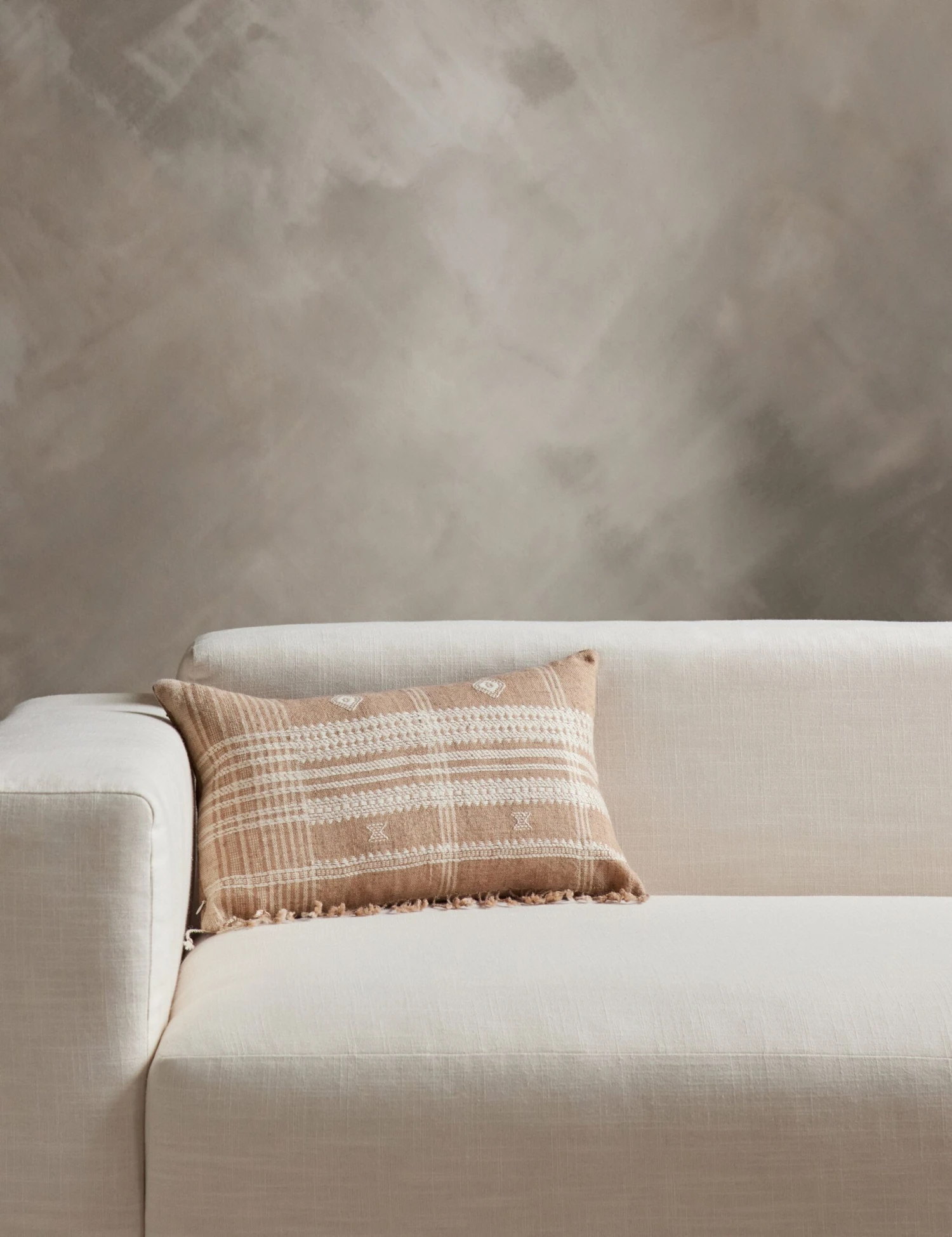 For a welcoming home, a handmade touch goes a long way. This throw pillow is hand loomed and woven with Desi wool creating textural geometric patterns. These pillows are crafted using traditional techniques in western India—slight variations showcase the artisanal process giving each decorative pillow its own unique look.