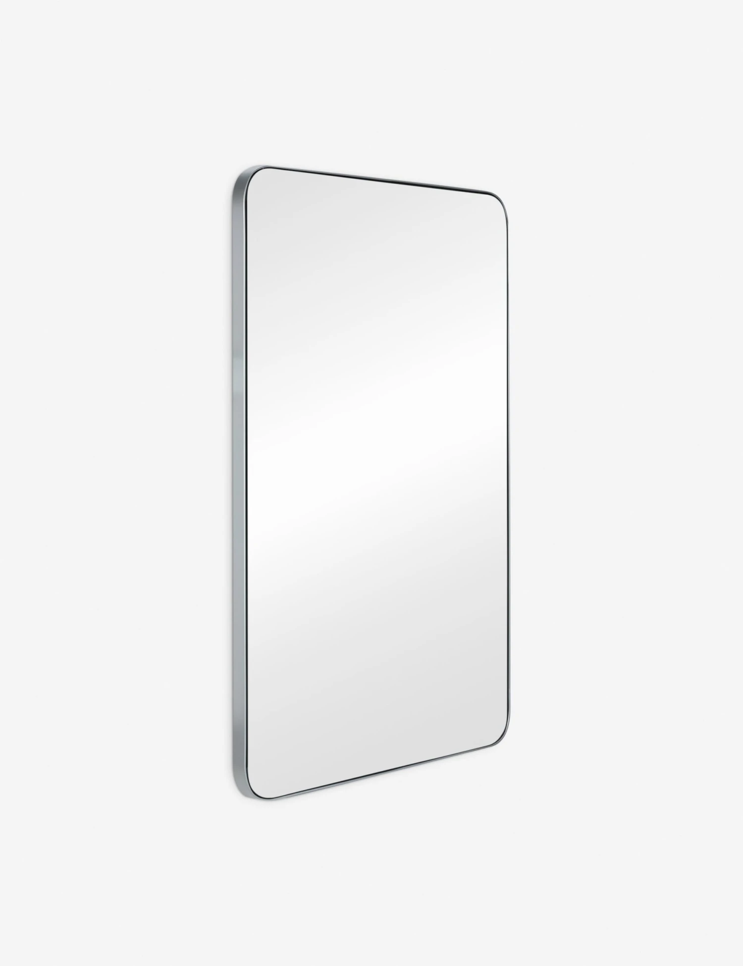 Rounded corners soften the look of this chic, minimalist wall mirror. Perfect for contemporary spaces, this mirror is perfect above a bathroom vanity or dresser for a modern touch.