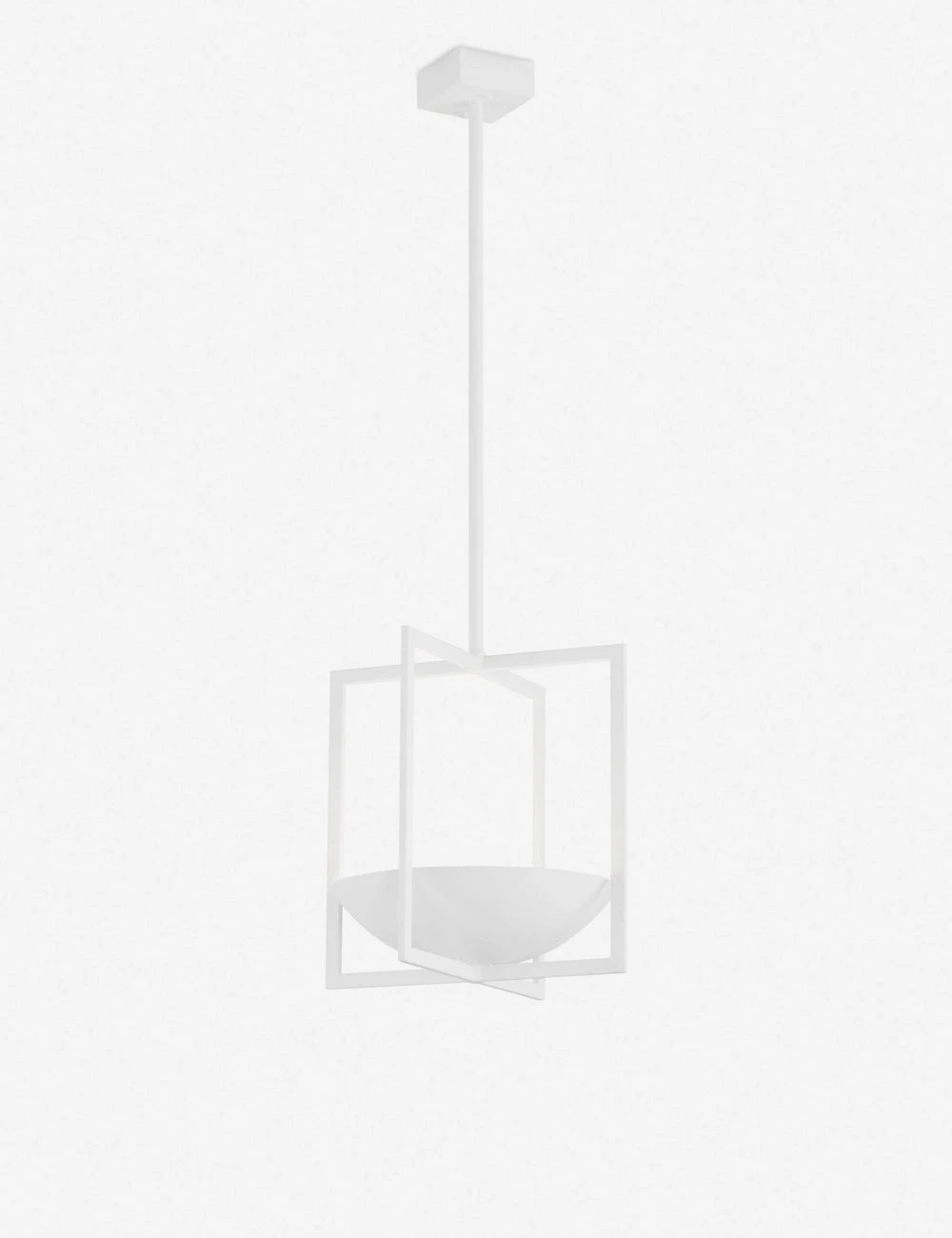 The Quintana pendant light strikes geometric appeal from every angle. The airy linear frame holds a basin shade that casts light up, filling the room with a bright ambiance. Style this hanging light in an entry or as a set framing your bed.
