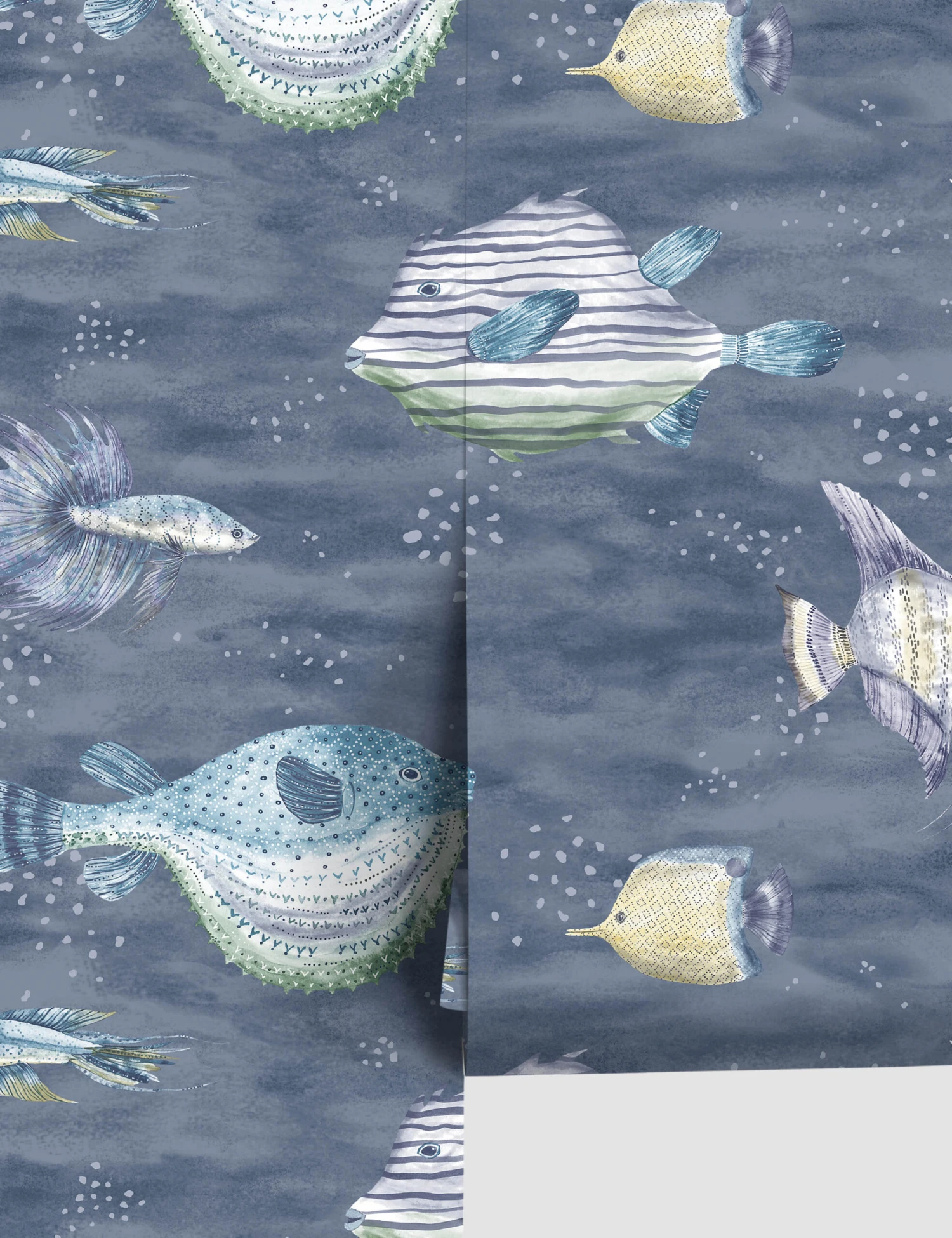 Looking to bring some signature flair into your coastal home design? Graphic wallpaper is the perfect way to transform a room with statement appeal. A colorful array of intricate fish brings fresh appeal to this marine-inspired home wallpaper design.