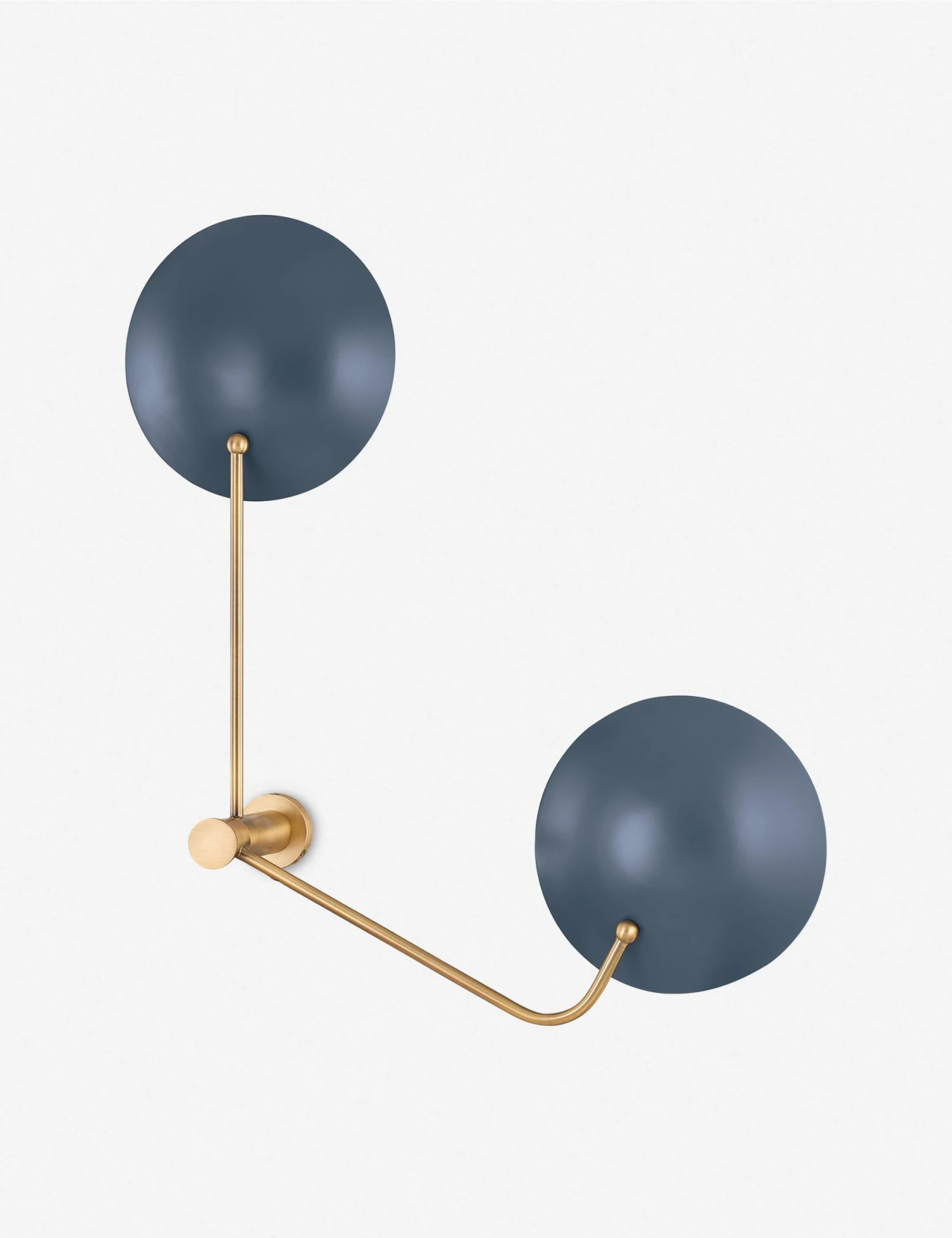 Blending notes from Bauhaus and mid-century designs, the Sereno sconce projects effortless appeal that will transform your walls. With slim brass-clad lines and soft matte shades, this wall sconce defines sleek elegance. The plug-in design is wet-rated, letting you bring an unexpected touch of style to any space—plus, the bottom arm rotates for even more dynamic appeal.