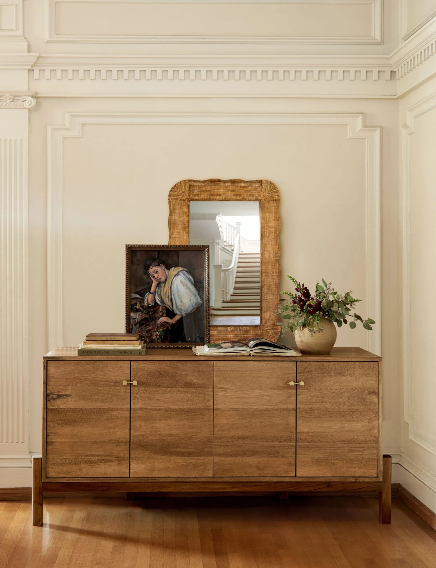 An undulating silhouette draws the eye to this unique mirror featuring a woven rattan frame that offers big texture and effortless warmth. Layer this wall mirror into any living space for a timeless touch of style full of fresh appeal.